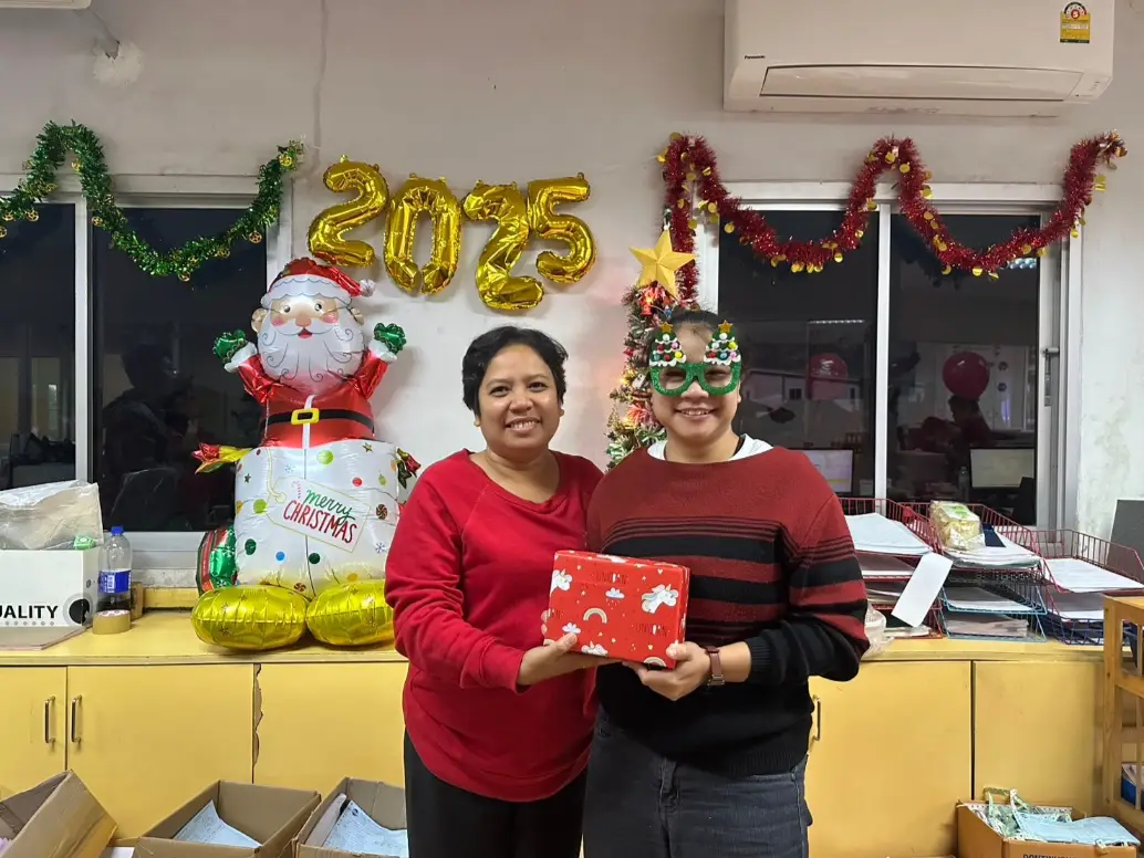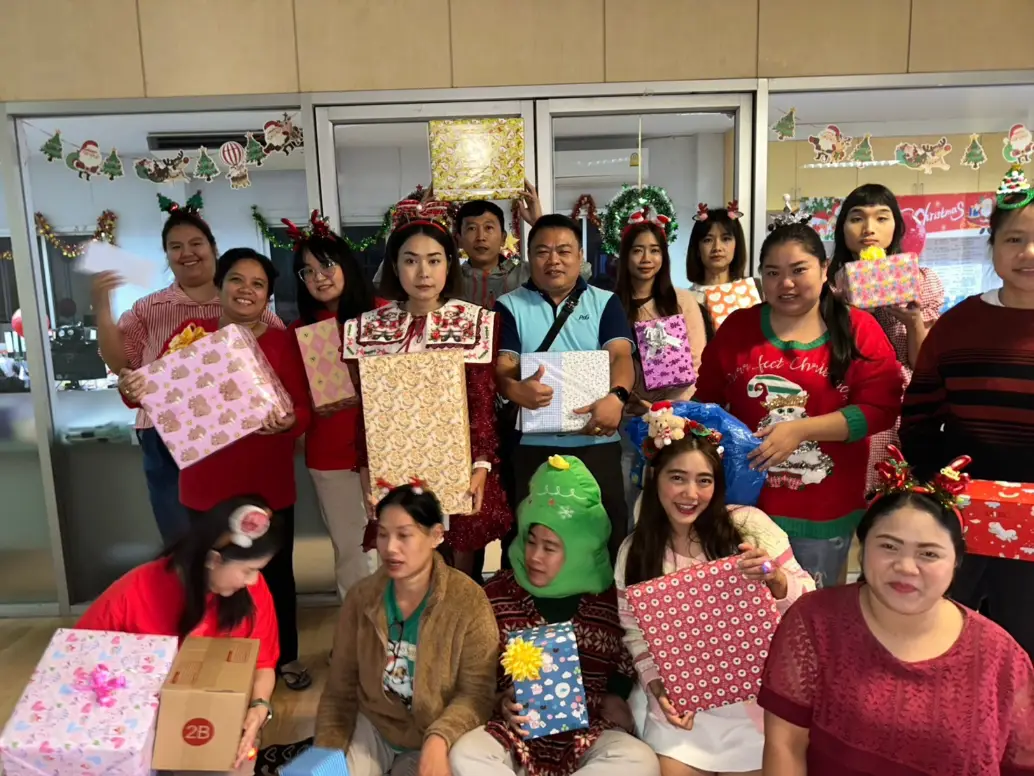 🎄✨ บรรยากาศอบอุ่นในงานแลกของขวัญคริสต์มาสของบริษัท! ✨🎁