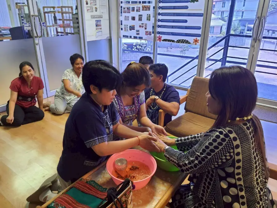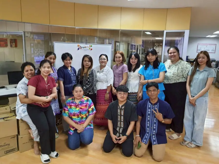 บรรยากาศเต็มไปด้วยความอบอุ่นและความปีติ พนักงานหลายท่านร่วมแต่งกายด้วยชุดพื้นเมืองสวยงาม สะท้อนถึงความงดงามของประเพณีล้านนา 👘✨